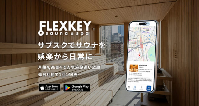 株式会社OPTIMISTは、人気サウナ・温浴施設を月額定額で通い放題にする新サービス「FLEXKEY(フレックスキー)」を2025年12月にローンチ。クラウドファンディングによるサービスの会員権先行販売を、2025年11月5日からMakuakeで開始する。